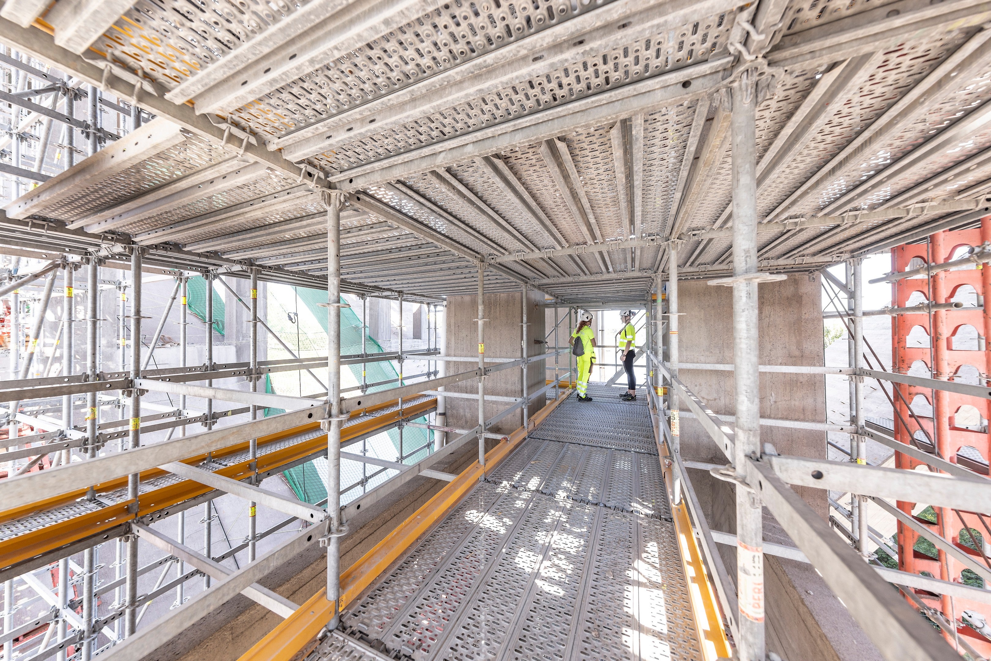 För att säkerställa renoveringen används en mängd olika system och lösningar från PERI, inklusive VST- och VRB-balkar, VARIOKIT, och PERI UP ställningssystem. Dessa skräddarsydda lösningar gör det möjligt att möta de specifika behov som dyker upp under projektets gång.
