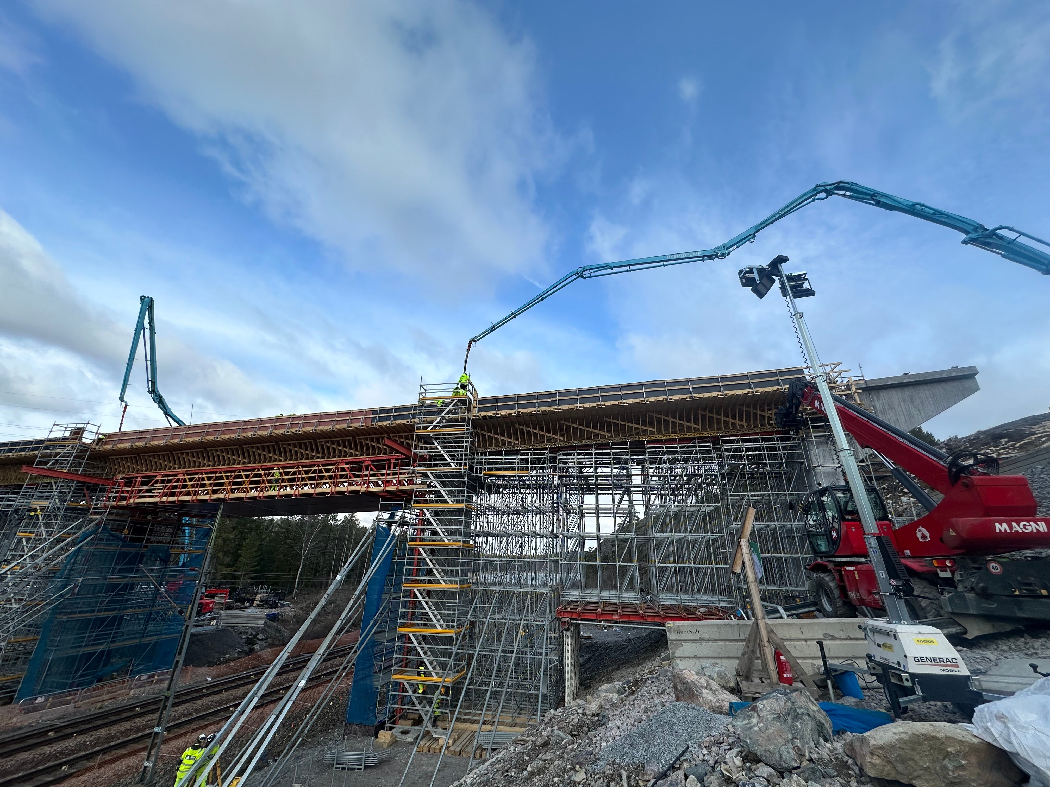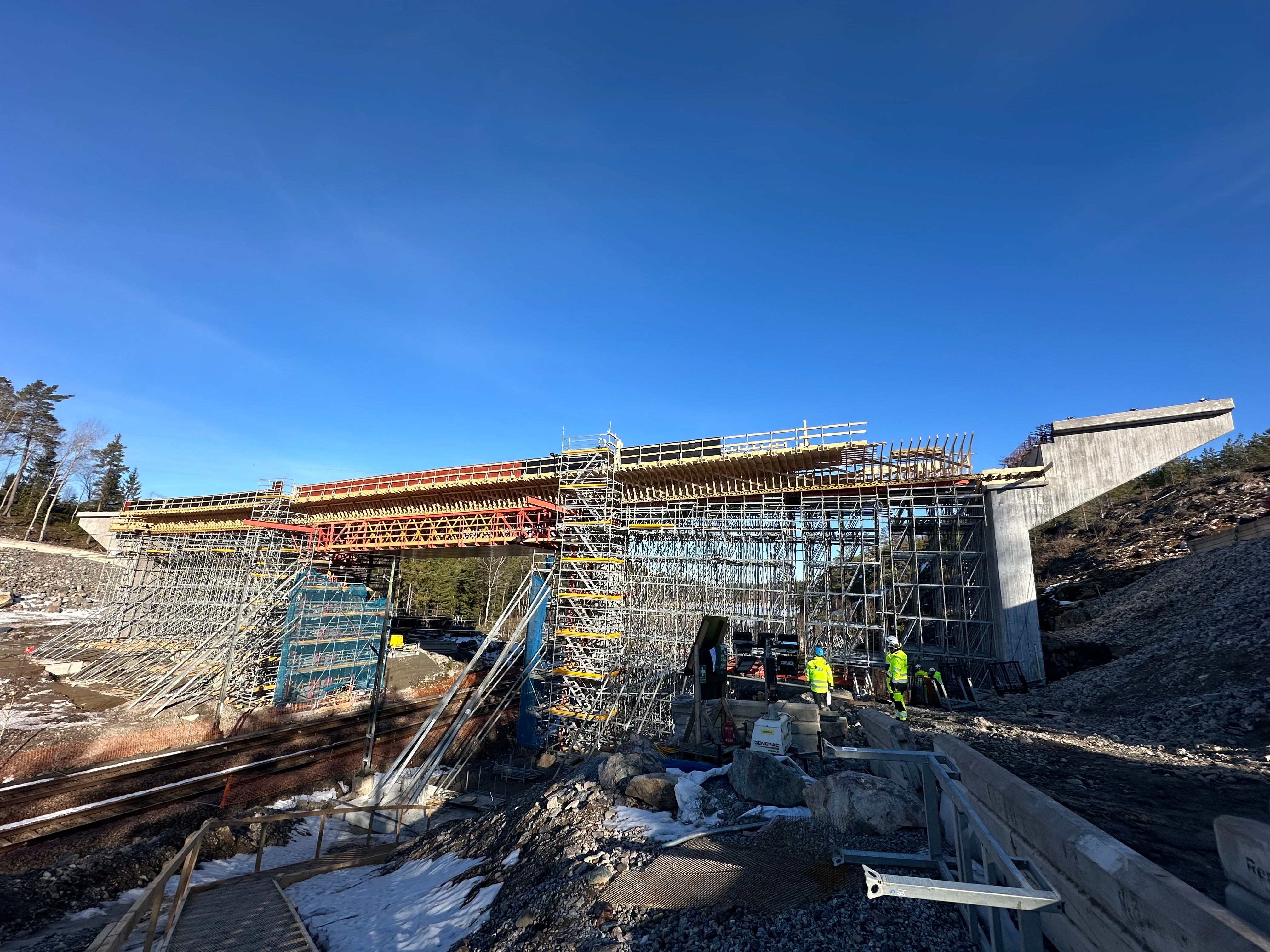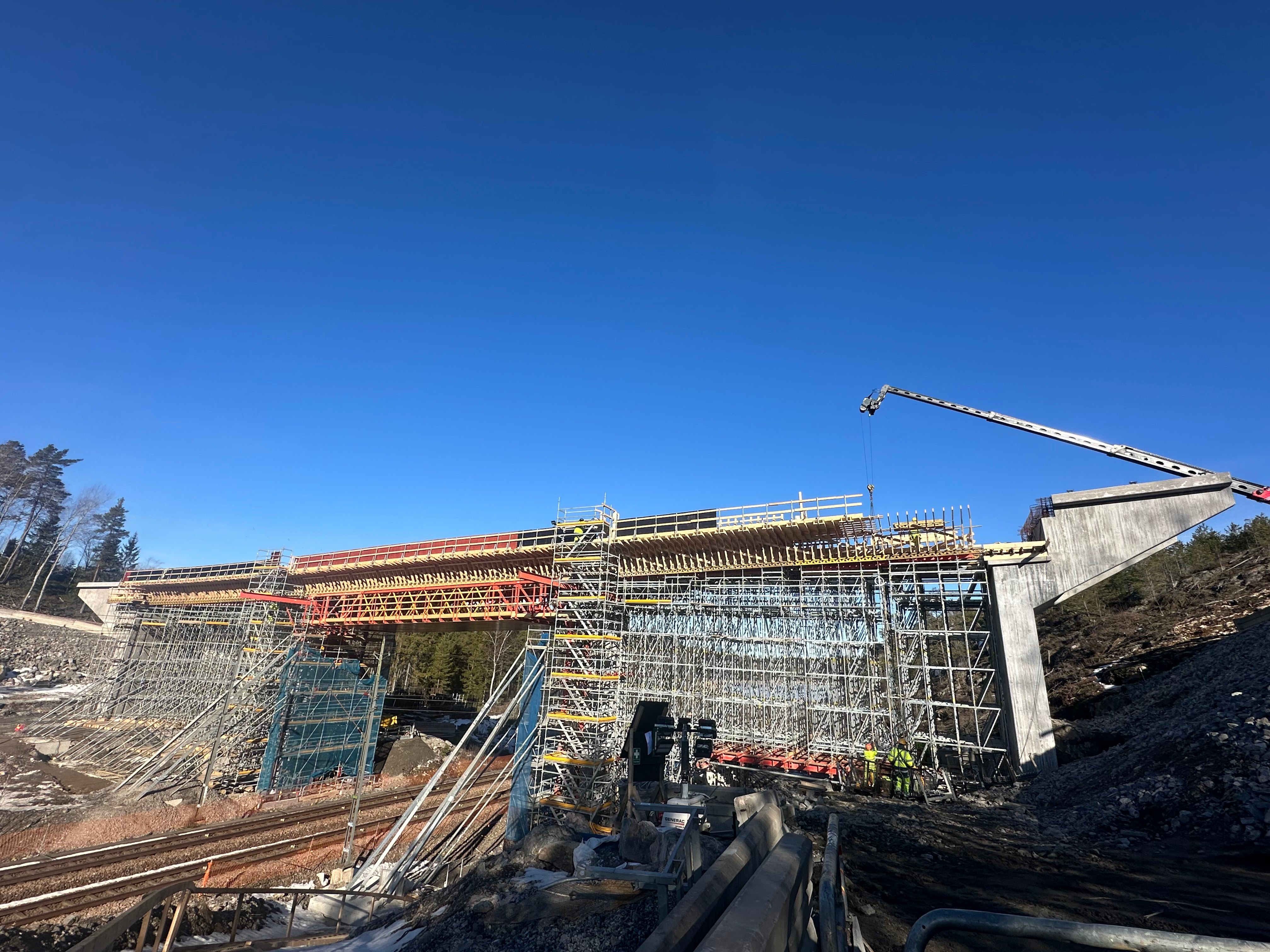 Broar, stödkonstruktioner och grundläggning utförs med höga krav på precision, säkerhet och samordning – särskilt då arbetet sker i nära anslutning till befintlig järnväg.