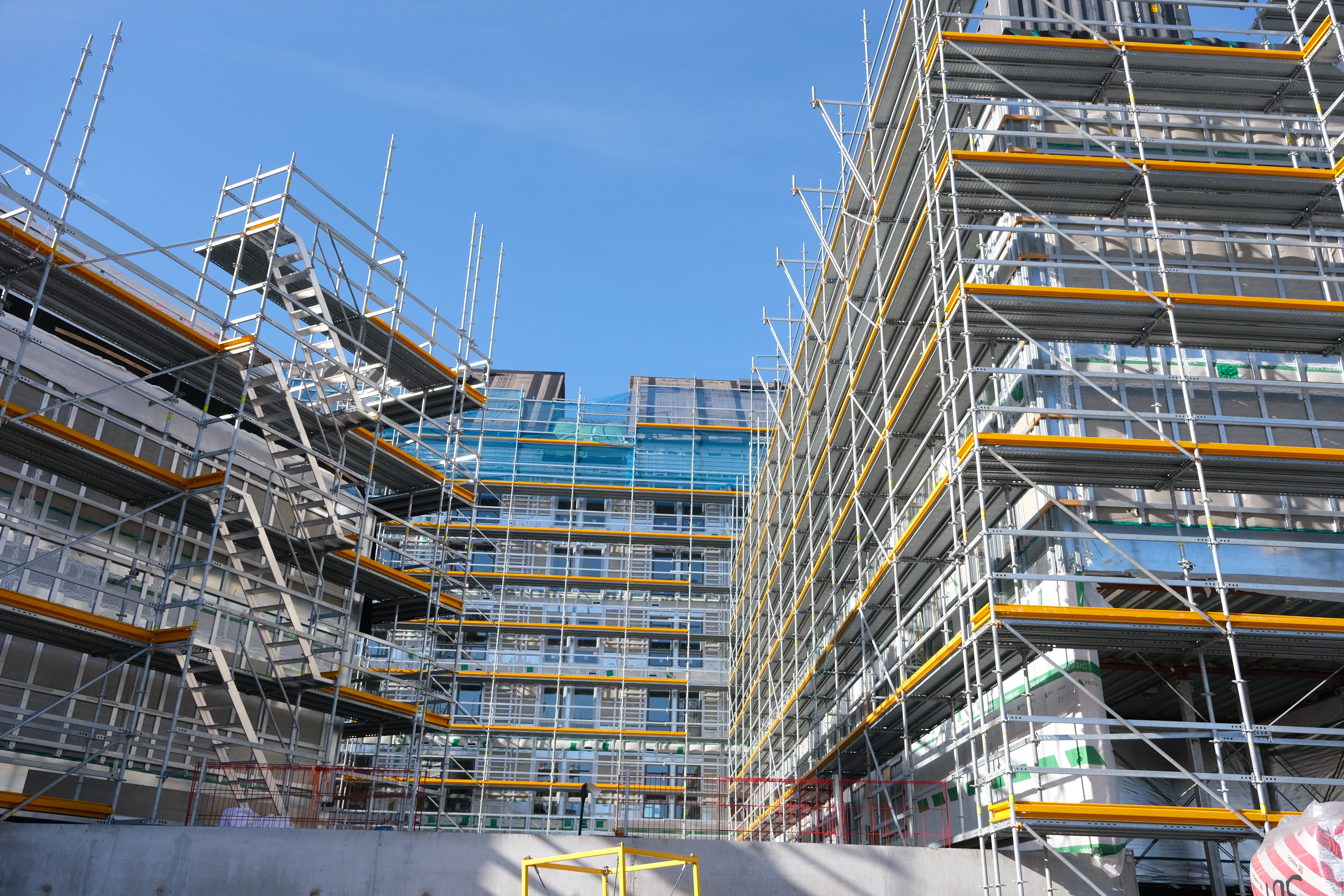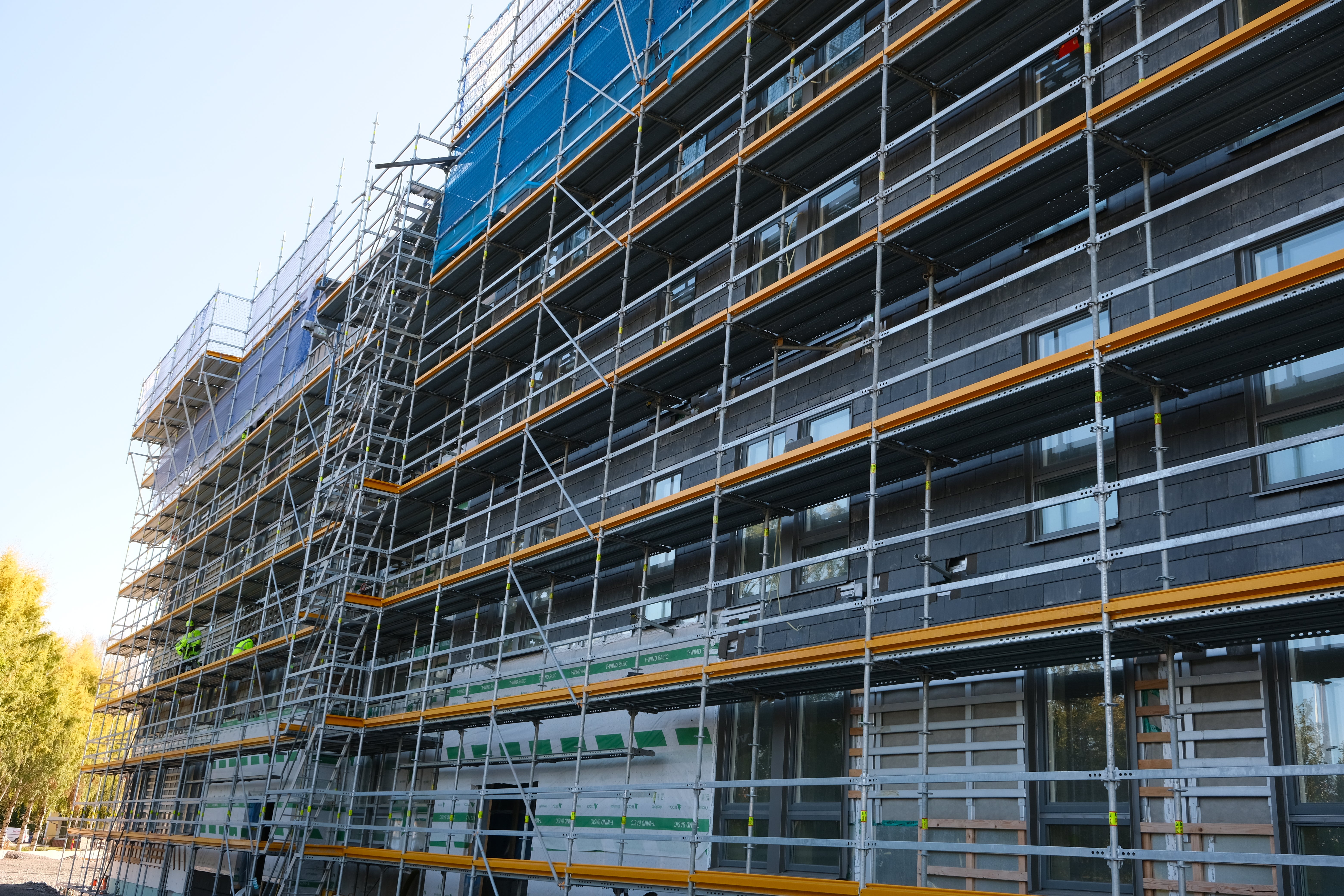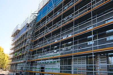 När vi ser upp mot byggnaderna får vi en stark känsla av säkerhet i projektets utförande. Det öppna samarbetet mellan SNT och PERI framgår tydligt. Vi lämnar byggplatsen med en känsla av tillfredsställelse över hur ställningarna från PERI UP Flex ramar in det växande bostadsområde.